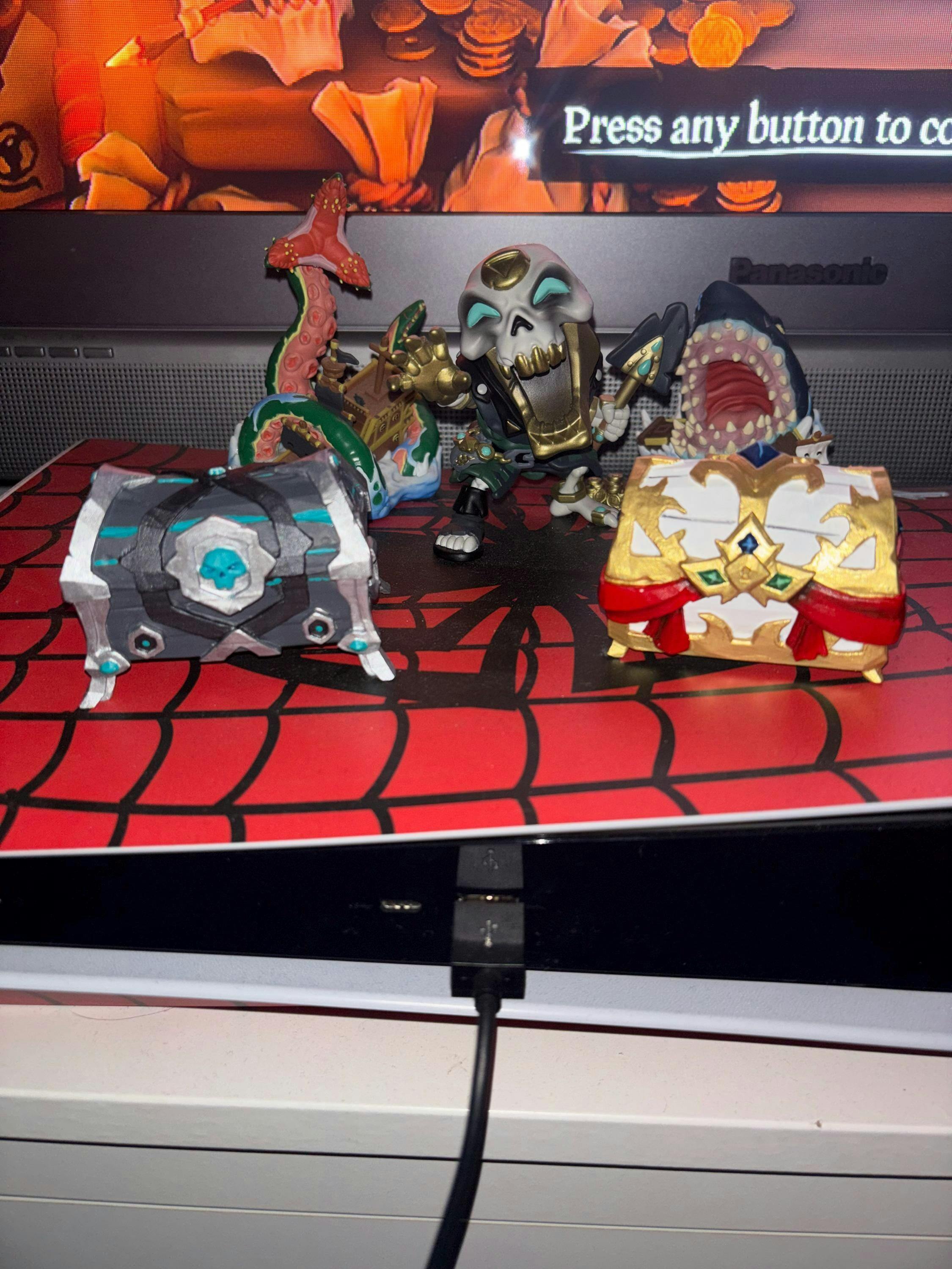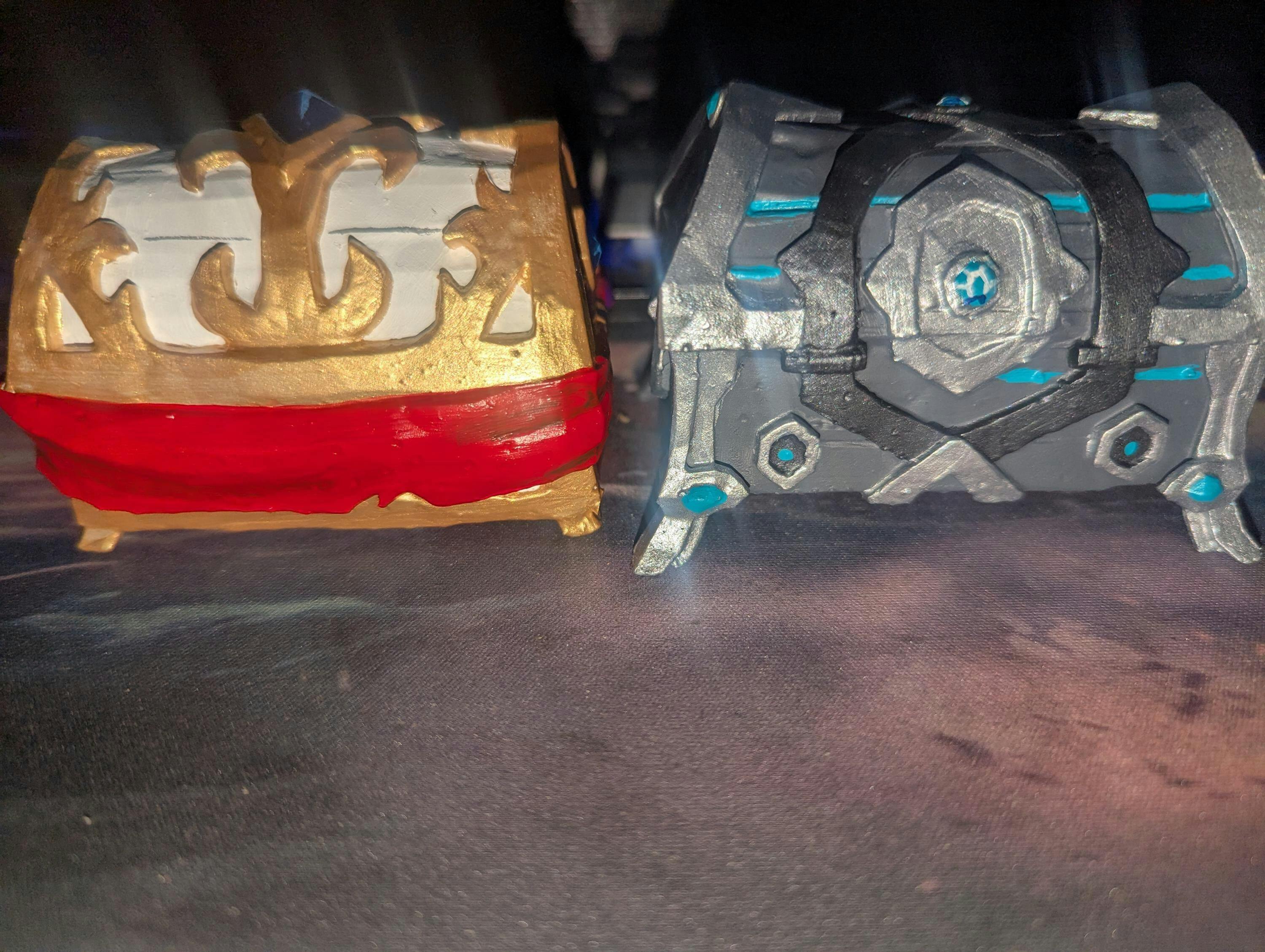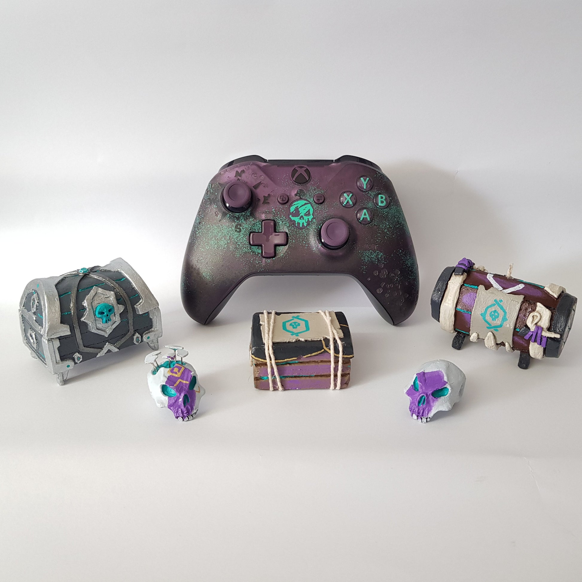 The skulls and chests are made out of resin, they are lightweight and easy to move around but are quite small so keep out of the reach of children. These are display items and NOT toys. Each item is handmade so they may look slightly different from the pictures. Any questions please dont hesitate to contact us! Controller NOT included.